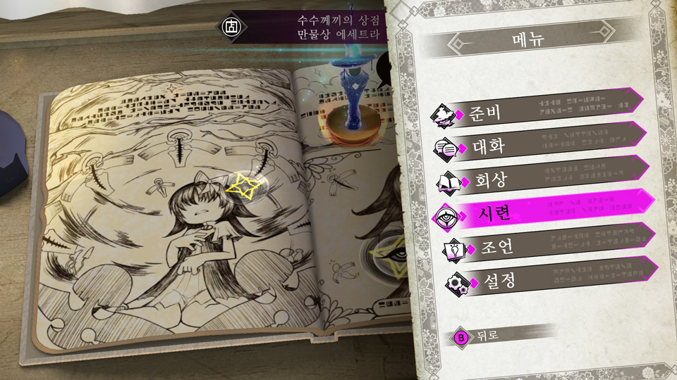 만물상 에세트라에서 두루마리를 사면 다양한 액션을 습득할 수 있다. 상황에 맞는 기술을 적절히 사용해서 닥쳐 오는 위기를 영리하게 헤쳐 나가자.